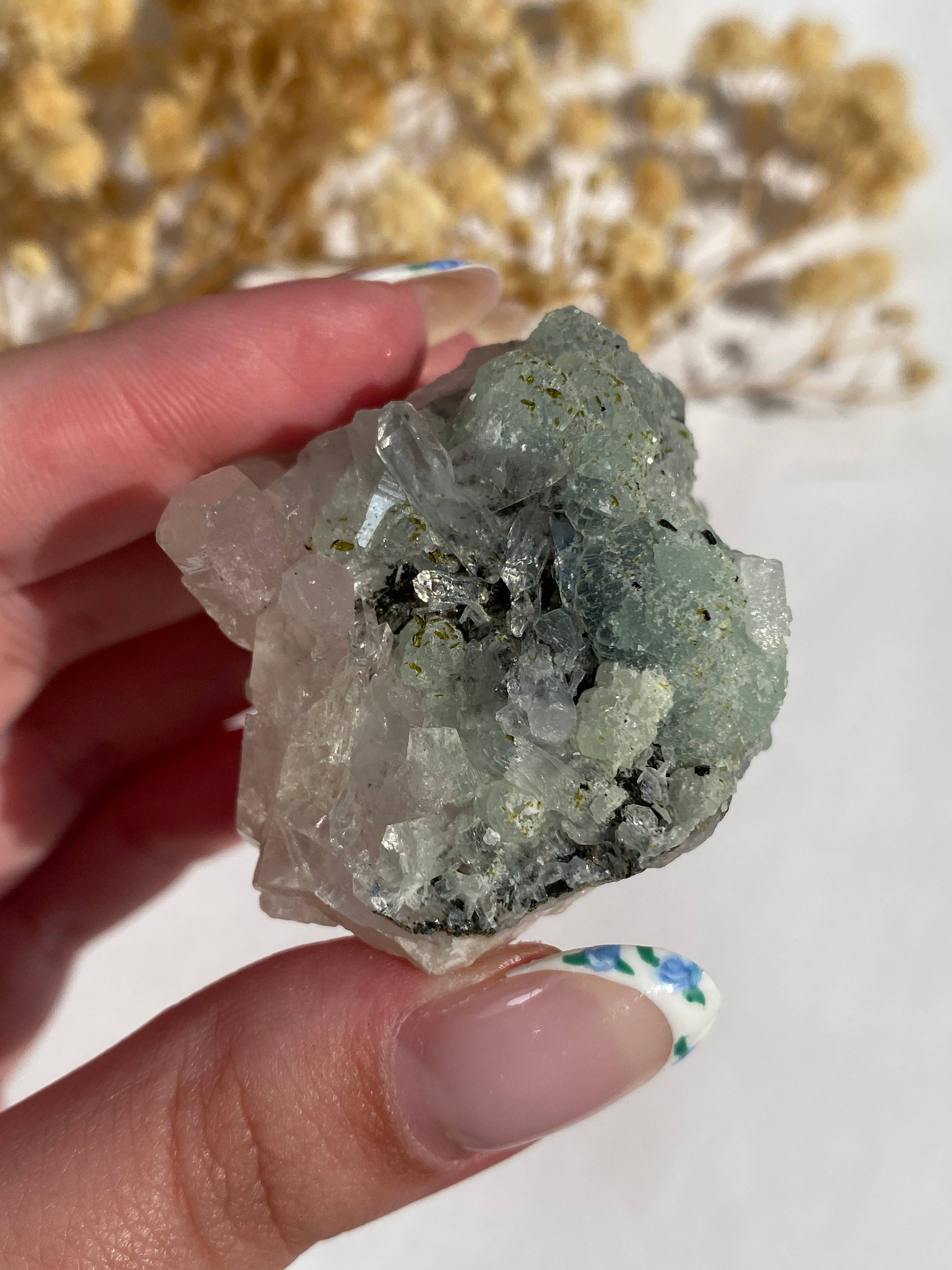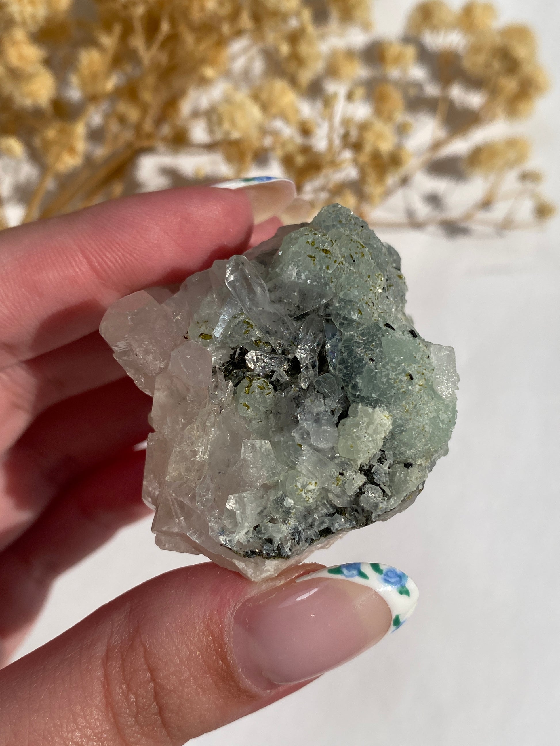 פריהנייט עם קוורץ גדילה נדירה גולמי יחידה 1